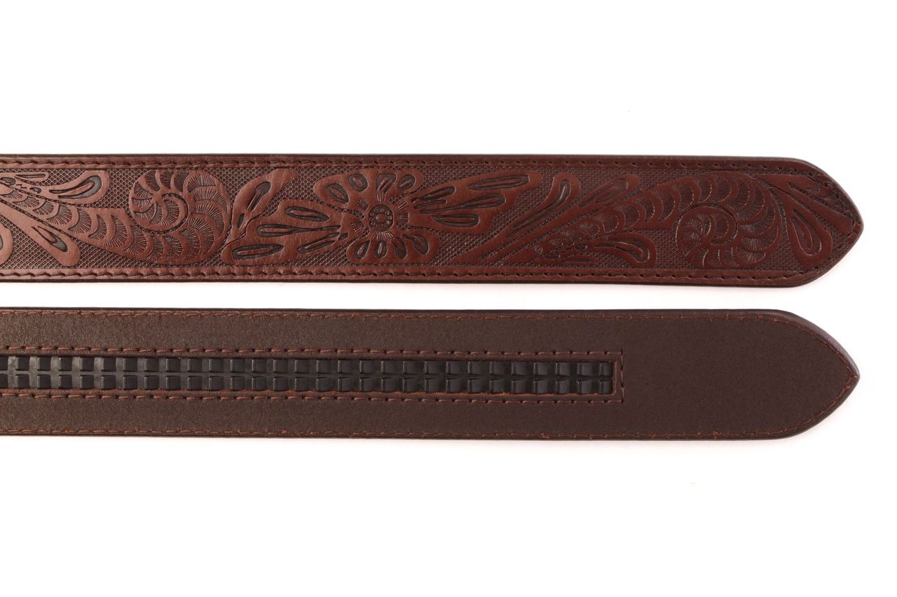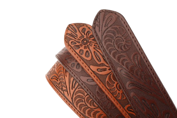 Inspired by the art of traditional leather tooling, La Fleur’s embossed floral pattern transforms rugged buffalo leather into something truly exceptional. Every curve and contour is pressed deep into the surface, creating a texture you can see and feel — dimensional, detailed, and full of character.