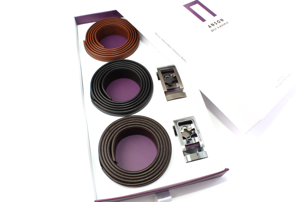 I purchased the starter belt gift box, which consisted of three belts in different colors(brown, black and cognac ) and two buckles. I have been trying to help my boyfriend with his wardrobe over the past couple of years and this was a perfect gift to encourage him to spruce it up. There must always be a belt to match the shoes to tie things together! I was absolutely thrilled with the quality of the belts and he appreciated the variety of the buckles and colors. Excellent holiday gift choice for us!